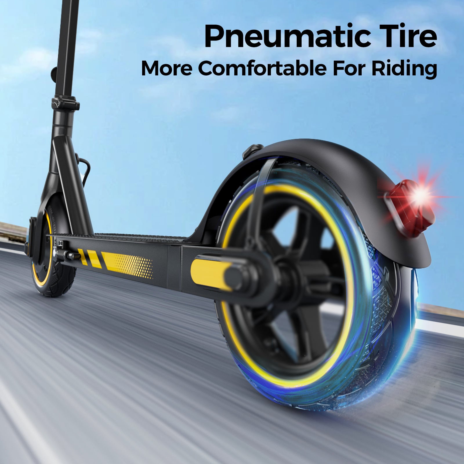 Fitted with 10-inch pneumatic air tyres, the V10 Pro improves ride comfort and grip on uneven roads and city surfaces. A drum brake system ensures reliable stopping power, making the scooter well suited to daily urban riding and stop-start traffic conditions.