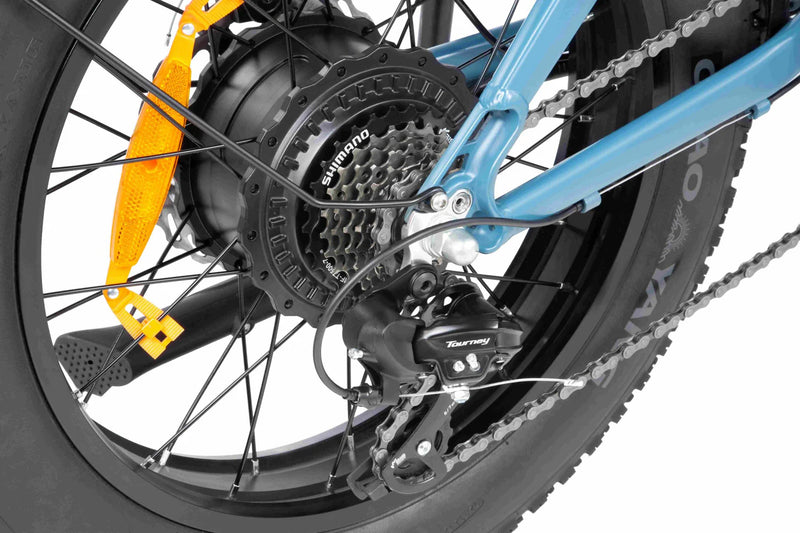Un moteur robuste dans le moyeu arrière fonctionne en harmonie avec la cassette Shimano Tourney 7 vitesses, offrant une assistance au pédalage fluide et une réponse précise de l'accélérateur. Changez de vitesse sans effort et profitez d'une puissance constante pour les côtes, les sentiers et les trajets urbains.
