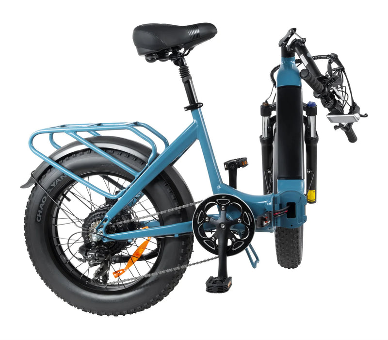 Son cadre robuste à gros pneus se plie en quelques secondes pour un transport et un rangement faciles, tandis que le porte-bagages arrière intégré vous permet d'emporter l'essentiel. Roulez confortablement sur des terrains variés et profitez de la polyvalence d'un vélo électrique pliable.