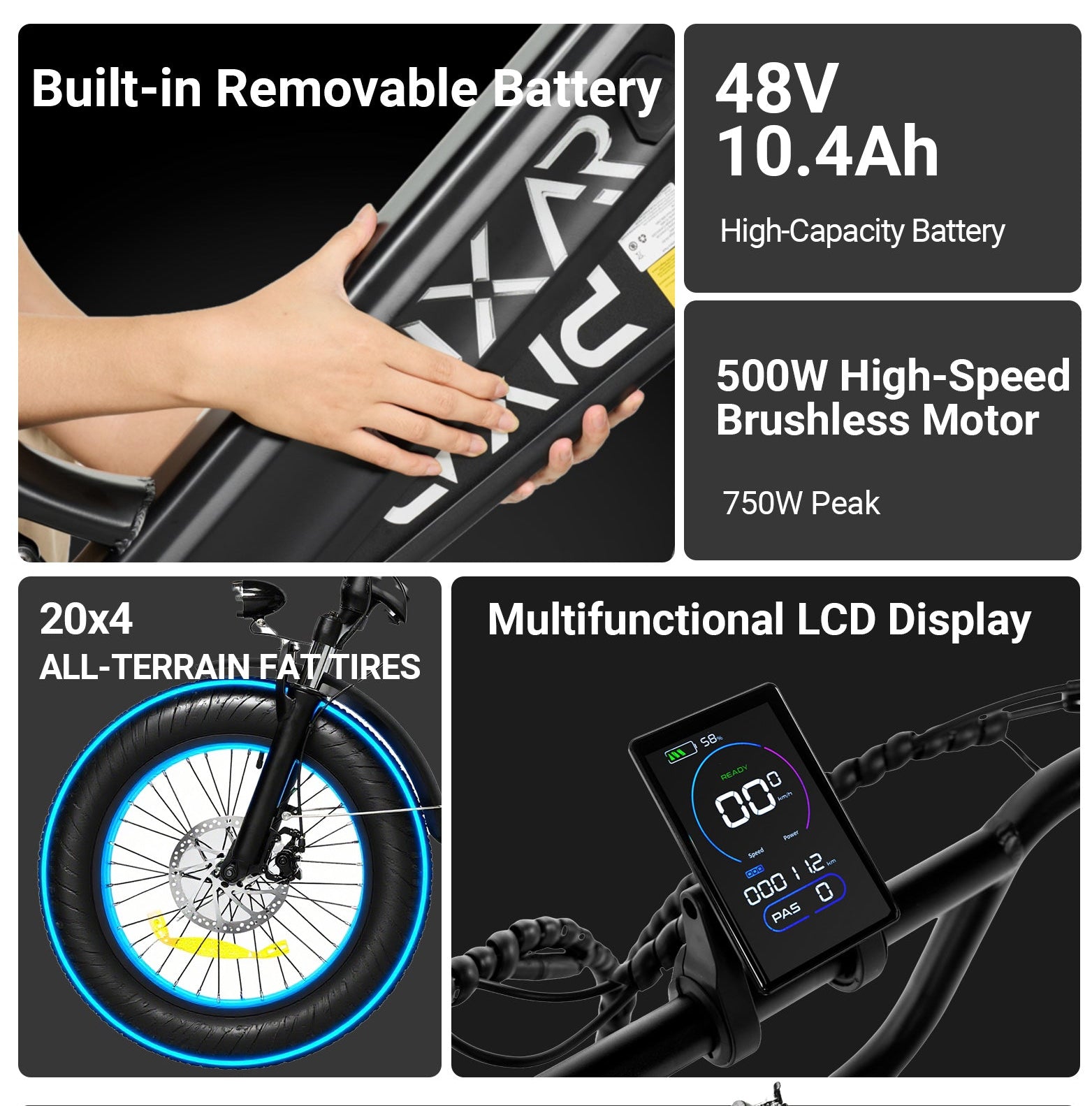 The Pixar Ride Electric Bike is a fat tyre e-bike built for riders who want stable handling, confident grip, and practical everyday performance. With a rear hub motor, removable battery, and wide 20×4.0" tyres, it’s designed for commuting and mixed-surface riding where permitted.