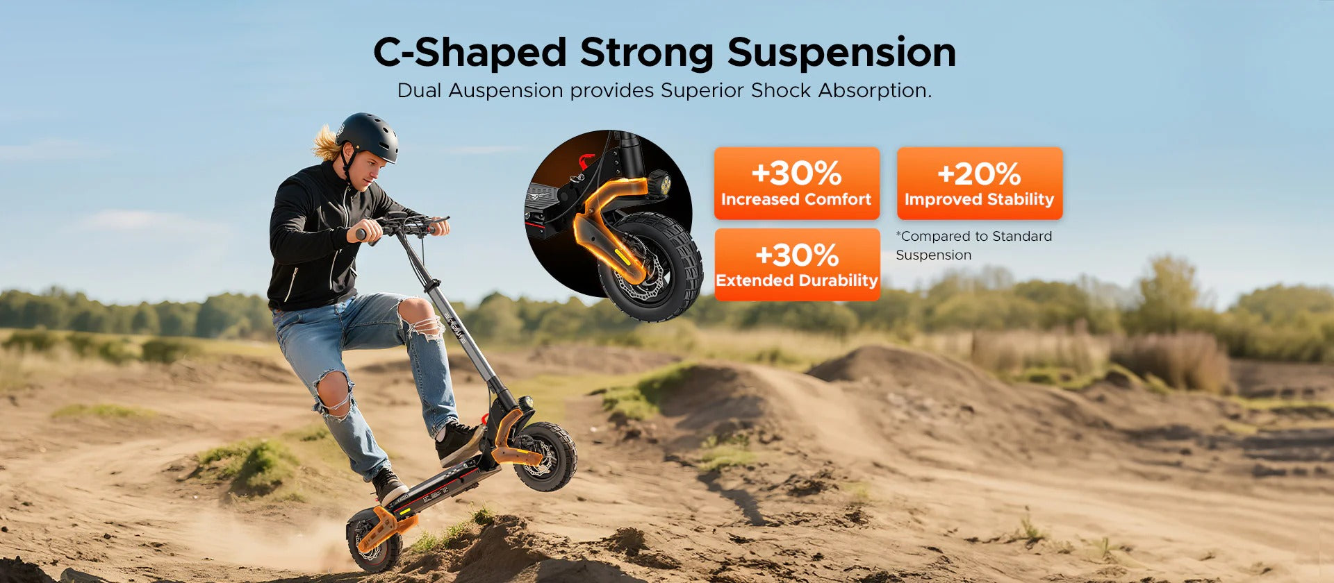 Le doppie sospensioni e i robusti pneumatici da 10″ assorbono le asperità e le superfici irregolari per una guida confortevole. I freni a disco anteriori e posteriori integrati assicurano una potenza di arresto affidabile e reattiva in condizioni diverse.