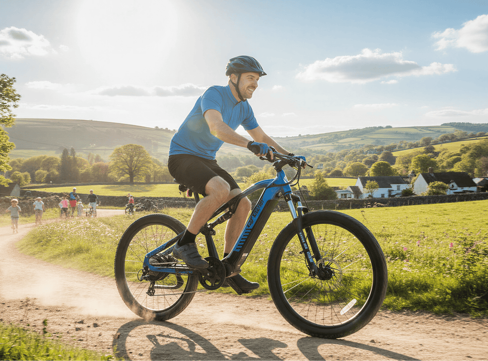 The Cyrusher Flex Electric Mountain Bike 250W 48V 15Ah is a full-suspension fat-tyre e-MTB designed to double as a tough commuter. Its high-step frame and aggressive geometry give you off-road confidence, while rack mounts and lighting keep it practical for weekday miles.