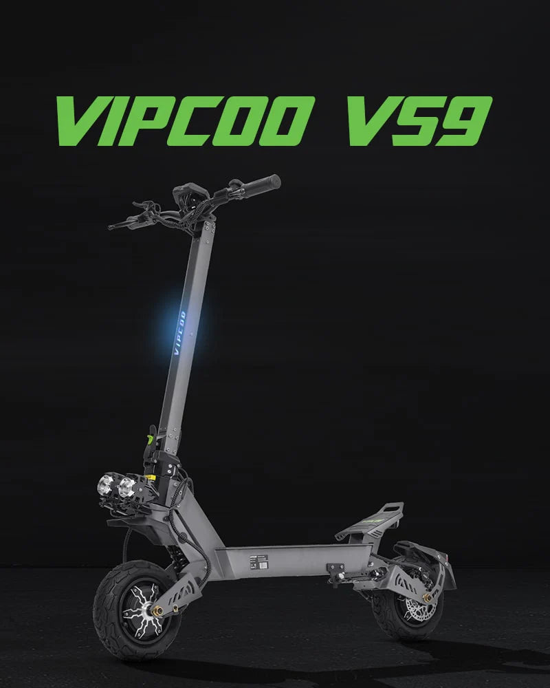 The VIPCOO VS9 Dual Motor Electric Scooter is a powerful, high-performance adult scooter designed for riders who want serious speed, long range, and off-road capability. With dual 1800 W motors (3600 W total), a large 60 V 26 Ah battery, and confident braking plus suspension.