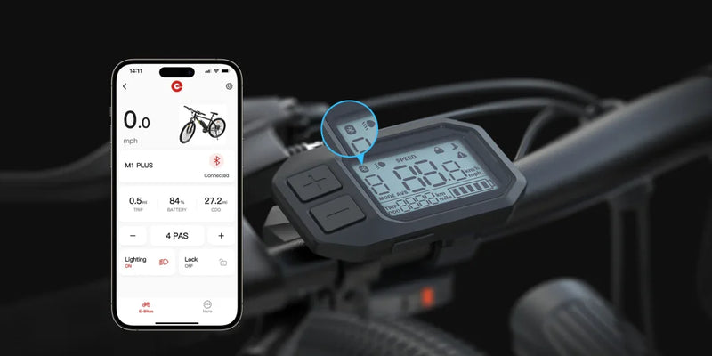 Het ingebouwde lcd-scherm toont alle belangrijke rijgegevens in één oogopslag: snelheid, batterijniveau, afstand, ondersteuningsniveau en meer. Dankzij de Bluetooth-connectiviteit kun je de fiets koppelen met de bijbehorende app om instellingen aan te passen, je ritten te volgen en de firmware indien nodig bij te werken.