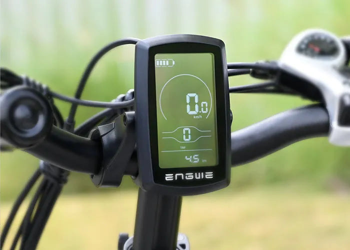 Houd de controle met het slimme lcd-scherm van de Engwe Engine X. Volg je snelheid, accuniveau, ondersteuningsmodus, reisafstand en meer – allemaal in één oogopslag. Rijd slimmer met realtime statistieken en intuïtieve bediening binnen handbereik.