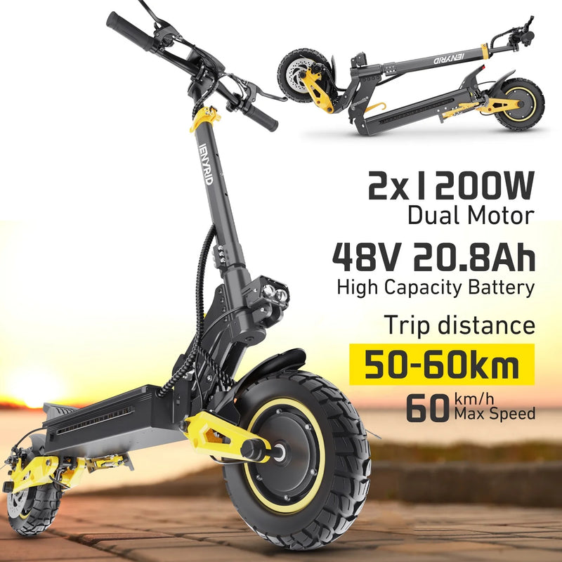 Beleef de sensatie van avontuur met de iENYRID ES1 2400W Dual Motor Off-Road Elektrische Scooter – gebouwd voor kracht, prestaties en pure opwinding. Met twee 1200W motoren levert dit beest maar liefst 2400W aan gecombineerd vermogen, waarmee je met gemak snelheden tot 60 km/u bereikt.