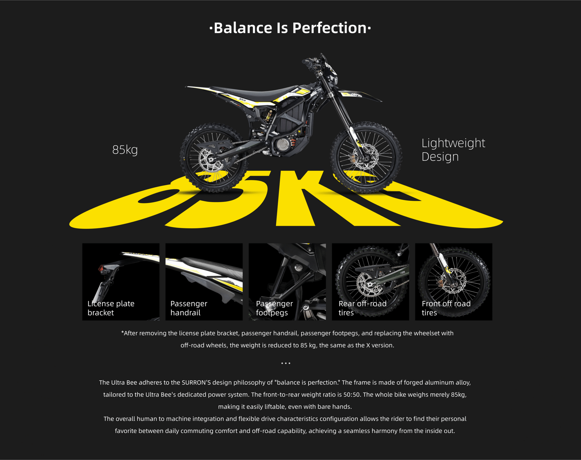 Full-size electric motocross-style dirt bike with a listed 22.5 kW peak power output. Strong, consistent pull through the midrange makes it ideal for aggressive off-road riding and heavier riders.