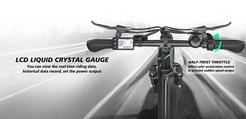 Never second‑guess your ride. The removable 36 V 10 Ah lithium battery, managed by an intelligent BMS, slides out for fast, safe charging and delivers up to 50 km of range. Keep tabs on speed, distance, and power levels with the crystal‑clear LCD gauge, then dial in smooth starts using the half‑twist throttle for precise acceleration.