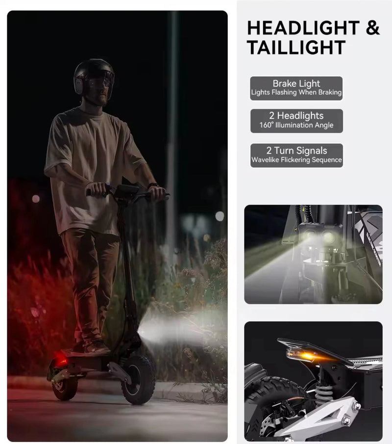 With 270° wide-angle LED turn signals, side and rear visibility is greatly enhanced—offering up to 30 meters of clear nighttime visibility. The smart synchronized dual brake light system triggers high-frequency flashing during emergency braking, helping riders stay safer by improving reaction time behind and lowering intersection lane-change risks by 46%, as verified in testing.