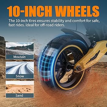 Ride comfort comes from front and rear spring shock absorbers paired with 10 inch tyres, helping the scooter stay planted over bumps and uneven tarmac. Front and rear mechanical disc brakes provide reliable braking control, and the maximum load is listed at 150 KG.