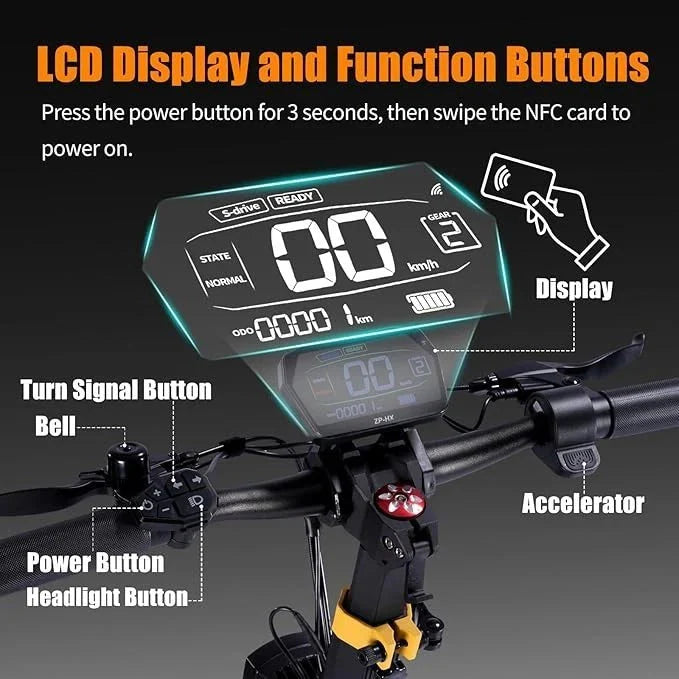 The larger 48V 17AH battery is built for longer runs, with range listed up to 25 MILES on a full charge (conditions dependent). It is a practical setup for longer commutes, leisure rides and higher-speed use where appropriate.